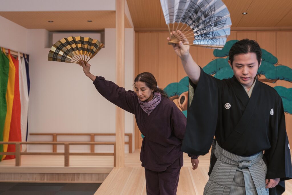 Guests staying at the hotel can enjoy an authentic performance of seasonal Noh plays by a first-rate Noh performer. In addition, they receive direct instruction in the master performer’s techniques—kotsuzumi (small hand drum), dance, and chanting—deepening their understanding of Japanese culture.